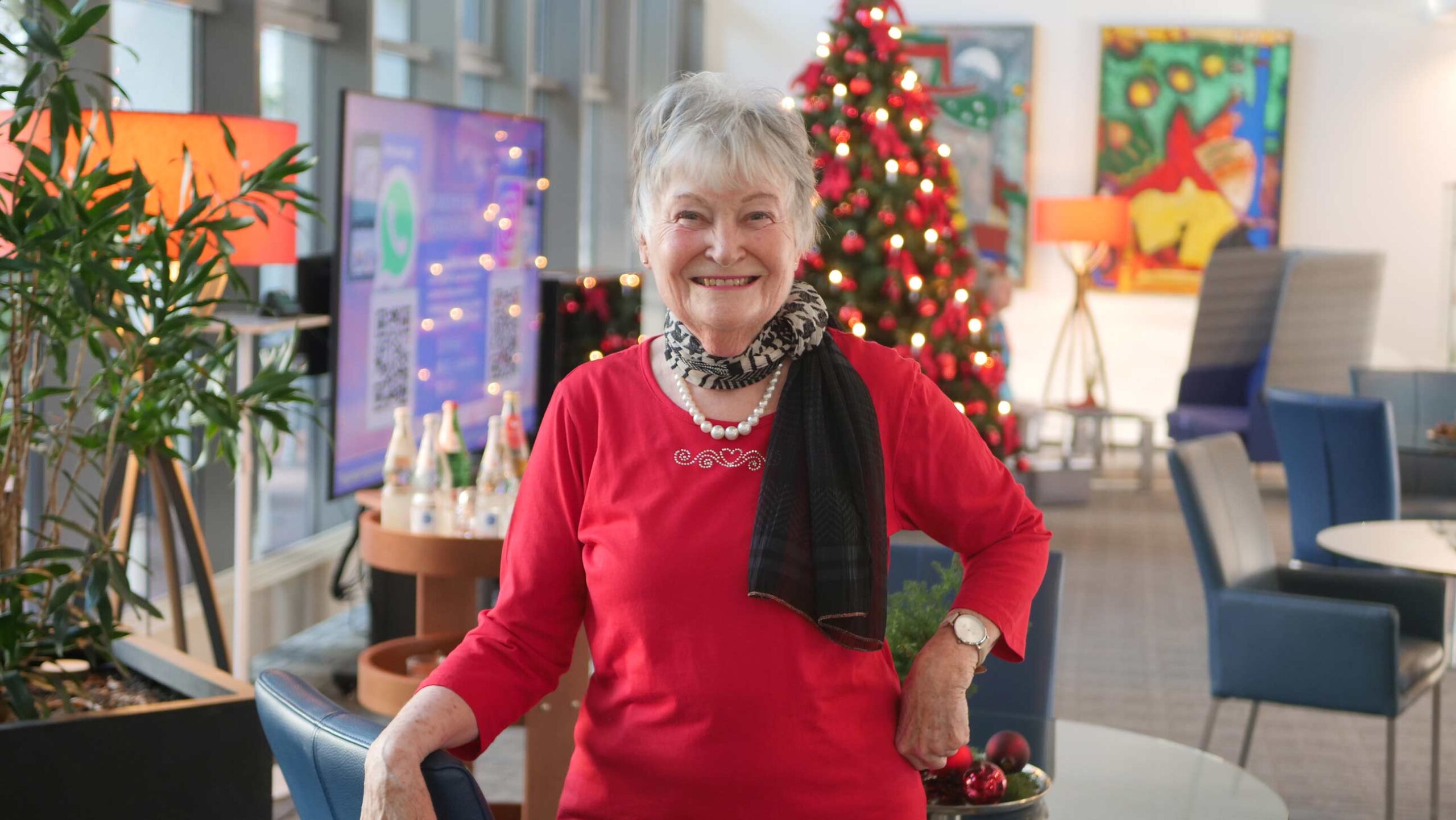 Doch dann richtete sich der Blick von Inge Krahm ganz klar, pragmatisch und positiv auf Neues. „Meine Tochter, die ich nach dem Tod meines Mannes einmal im Jahr besucht habe, lebt seit vielen Jahren mit ihrer Familie in Kanada. Die Menschen hier vor Ort um mich werden weniger. Und meine Zeit ist auch begrenzt.“ Ihr Ansatz: Das Leben so gut wie möglich leben und dem auch im Alter Positives abzugewinnen. Gedacht, getan: Zu ihrem Geburtstag kam Inge Krahm im Februar 2024 zum Probewohnen und knüpfte da auch gleich belebende Kontakte. Danach stand fest: Wenn ihr Wunschappartement frei wird, zieht sie sofort ein. Im Dezember 2024 war es soweit – ihr erstes Weihnachten im Kastanienhof. „Die Vorbereitungen waren dann doch ganz schön stressig, aber so ist das nun mal bei einem solchen Umzug“, so ihre Rückschau. Dafür geht es mir hier nun prima. Ich versorge mich komplett eigenständig, koche in meiner kleinen Küche und gehe zu Veranstaltungen, wenn ich Lust habe.“