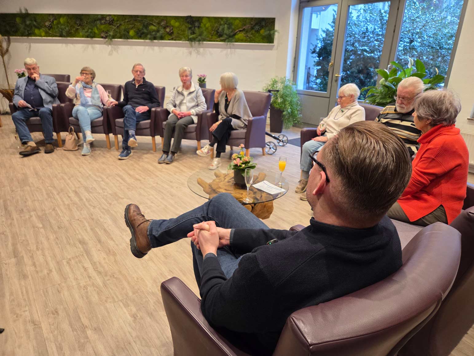 Bei einem kleinen Empfang mit Sekt und Orangensaft begrüßte Herr Dabrowski unsere neu eingezogenen Bewohner, die ihr Leben im 4. Quartal nun im Kastanienhof verbringen möchten. Kurz zuvor hatte Herr Dabrowski bereits den Foyerabend gestaltet, bei dem viele Themen gemeinsam mit den Bewohnern besprochen wurden.