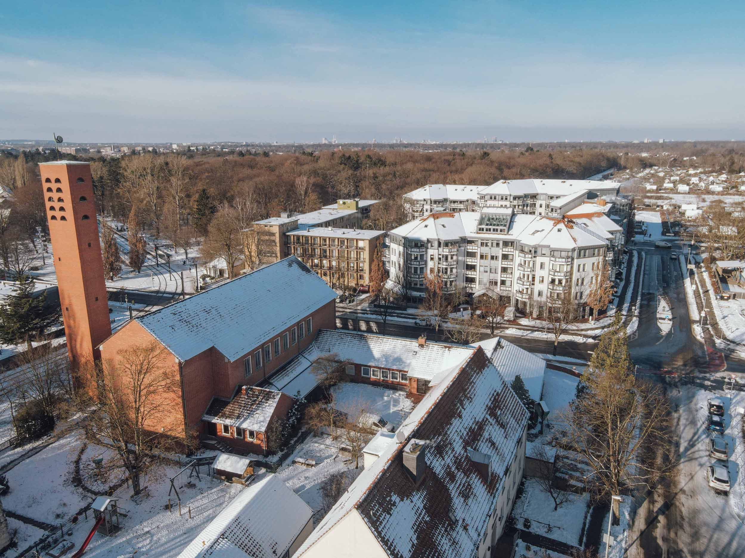 Der Winter ist nun auch in Hannover eingekehrt und hat unseren Wohnpark in eine ruhige, weiße Landschaft verwandelt. Über Nacht hat sich eine feine Schneedecke über die Dächer und Wege gelegt – und aus der Luft zeigt sich der Wohnpark von seiner besonders schönen Seite.