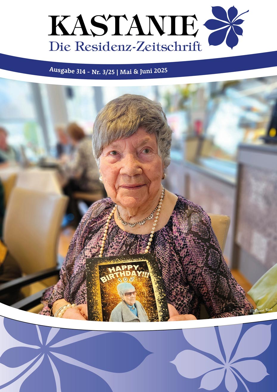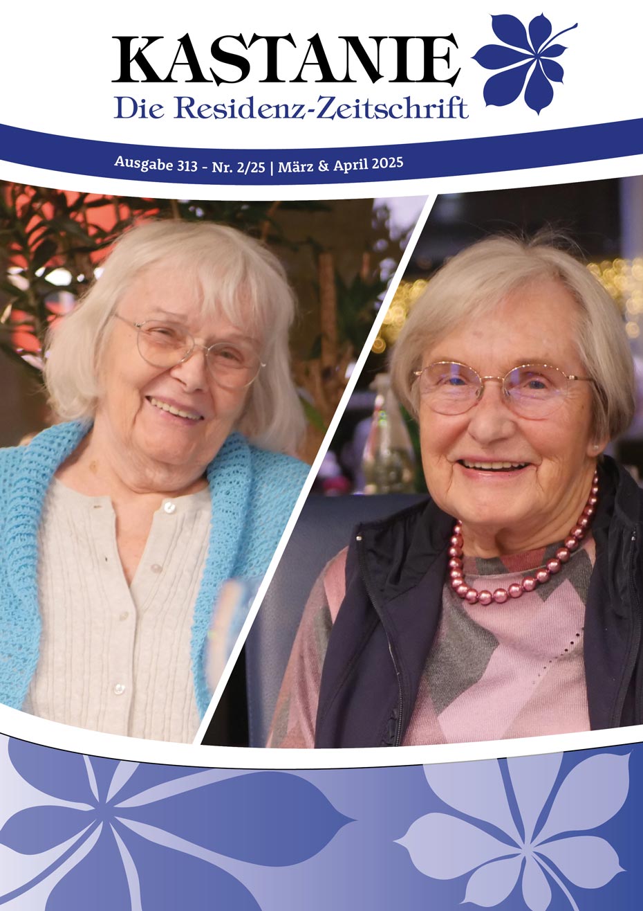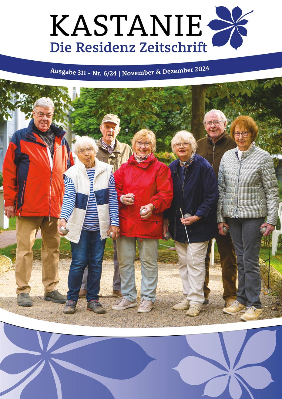 Monat für Monat spiegelt sich das Leben auch in unserer „KASTANIE“ wider. Zum Auftakt lädt Sie unser Geschäftsführer nicht nur mit (s)einem Wort zum Lesen ein. In verschiedenen Rubriken finden Sie Impressionen zu Begegnungen, Anregungen zu Literarischem, Sportliches für die grauen Zellen, Prosaisches, das aktuelle Veranstaltungsprogramm, kulinarische Offerten und vieles mehr.