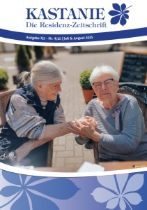 4/2025 „Die KASTANIE“ - ein Herzensprojekt mit neuem Leben Als ich meine Tätigkeit als Mediengestalter im Wohnpark Kastanienhof begann, war für mich sofort klar: Die Residenzzeitschrift „Kastanie“ möchte ich neu gestalten! Bis dahin wurde sie extern von einer Werbeagentur betreut und war auf 20 Seiten begrenzt. Auf mich wirkte sie recht unpersönlich und ich wollte ihr neues Leben einhauchen. Ich sah großes Poten- zial – und machte mich direkt ans Werk. Ich habe das Layout grundlegend überarbeitet, Inhalte neu strukturiert und den gestalterischen Anspruch deutlich erhöht. Wo Veranstaltungen bislang in reinen Textblöcken beschrieben wurden, sorgen nun Piktogramme und zahlreiche Bilder für mehr Übersicht und visuelle Eindrücke. Denn: Ein Bild sagt oft mehr als tausend Worte – und bleibt viel besser im Gedächtnis. Auch der Umfang ist gewachsen: von 20 auf zunächst 28, dann 40 und schließlich auf 52 Seiten. Die Seitenanzahl ist bewusst flexibel – denn sie richtet sich nach dem Leben, das im Kastanienhof stattfindet. „Die Kastanie“ soll ein Sprachrohr sein – für Bewohner*innen und Bewohner ebenso wie für Mitarbeitende. Beiträge werden nach Möglichkeit aufgenommen, und ich ermutige alle, ihre Texte selbst zu verfassen. Denn persönliche Worte bringen Authentizität – und das ist es, was unsere Zeitschrift besonders macht. Einige fragten sich, ob die vielen Bilder wirklich nötig seien. Meine Antwort: Ein klares Ja! Erst durch sie wird sichtbar, was den Kastanienhof bewegt. Veranstaltungen, Begegnungen, das tägliche Leben – all das bekommt nun ein Gesicht. Der gewohnte Informationsgehalt ist dabei vollständig erhalten geblieben – ergänzt um viele neue, lebendige Eindrücke. Marketing Frau Gerhardt und Frau Kulbartz mit der letzten Kastanie. 18