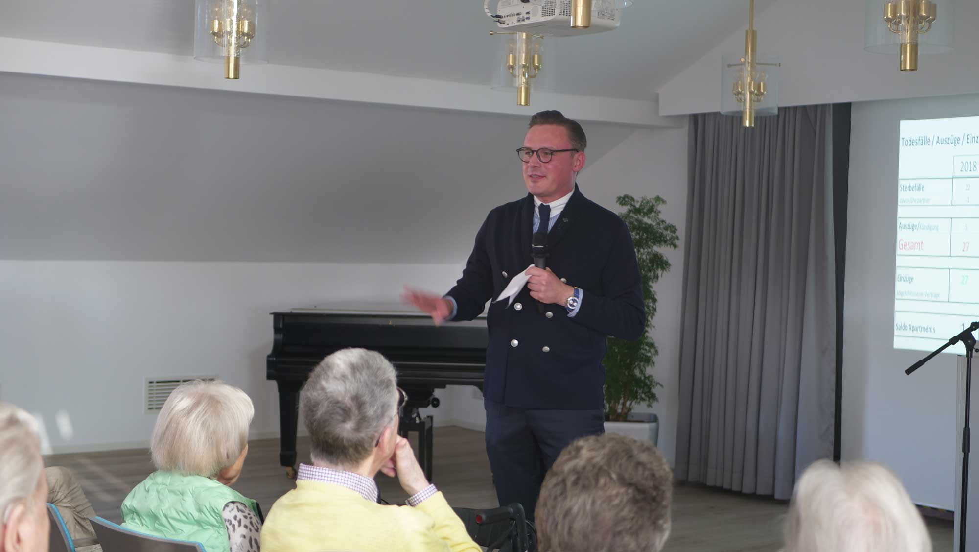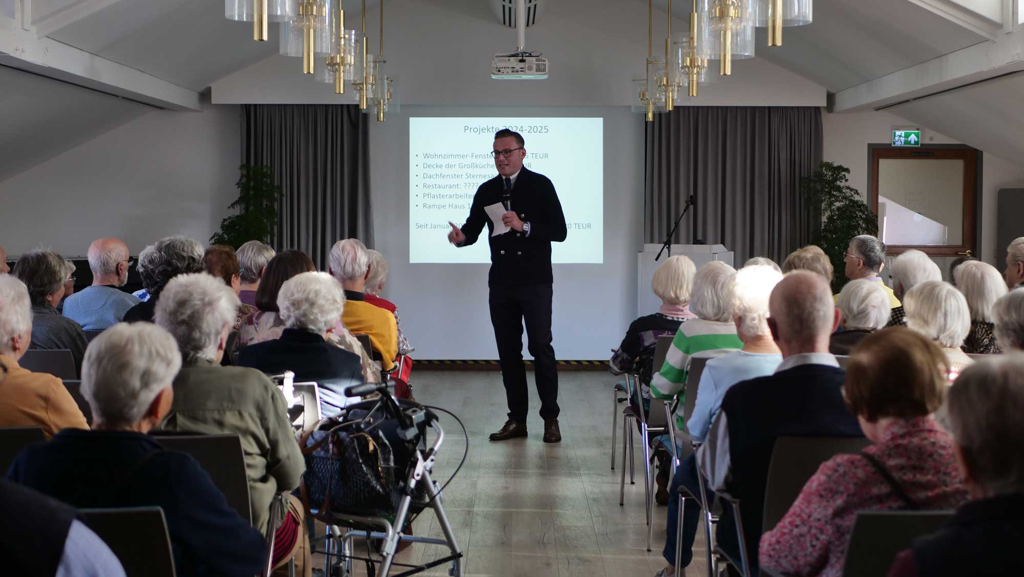 Einmal im Jahr findet unsere Bewohnerversammlung statt, die den Bewohner*innen einen umfassenden Einblick in die wirtschaftlichen Verhältnisse, aktuellen Planungen und zukünftigen Projekte der Sozialgewerke gibt. Sie bietet Raum für Fragen, Anregungen und offenen Austausch. Vor allem steht die Transparenz im Mittelpunkt, um Vertrauen zu stärken und gemeinsam die Weiterentwicklung des Wohnparks aktiv zu begleiten.