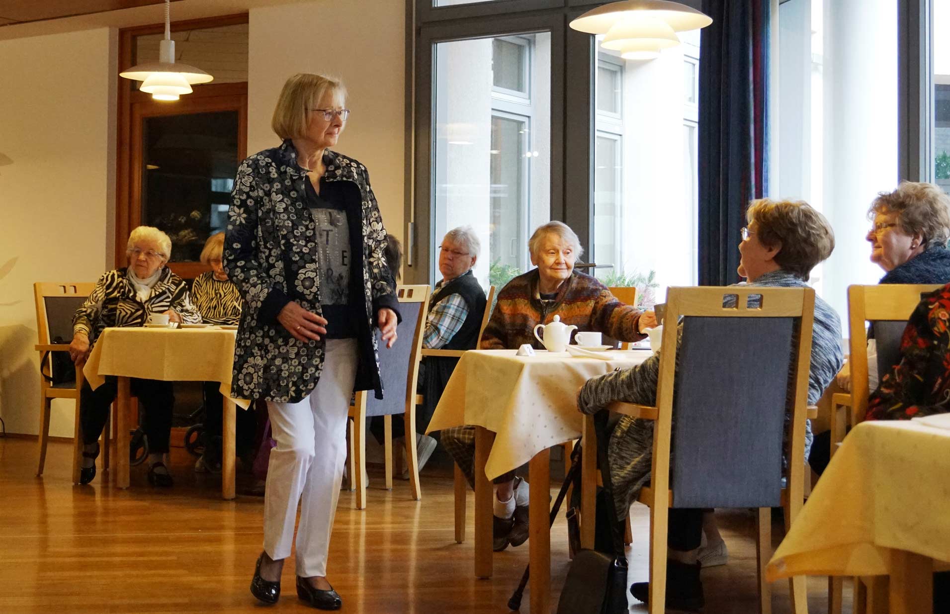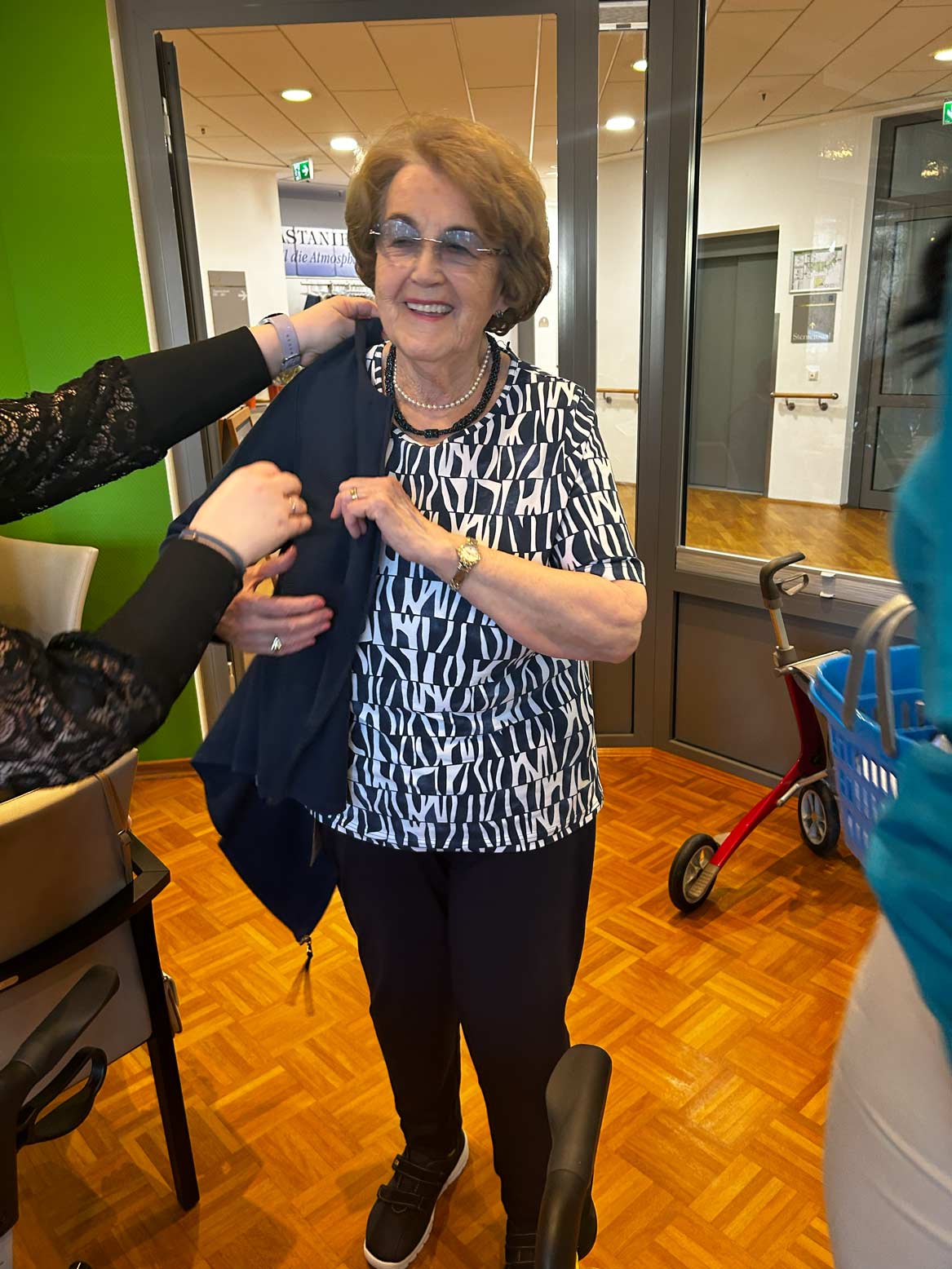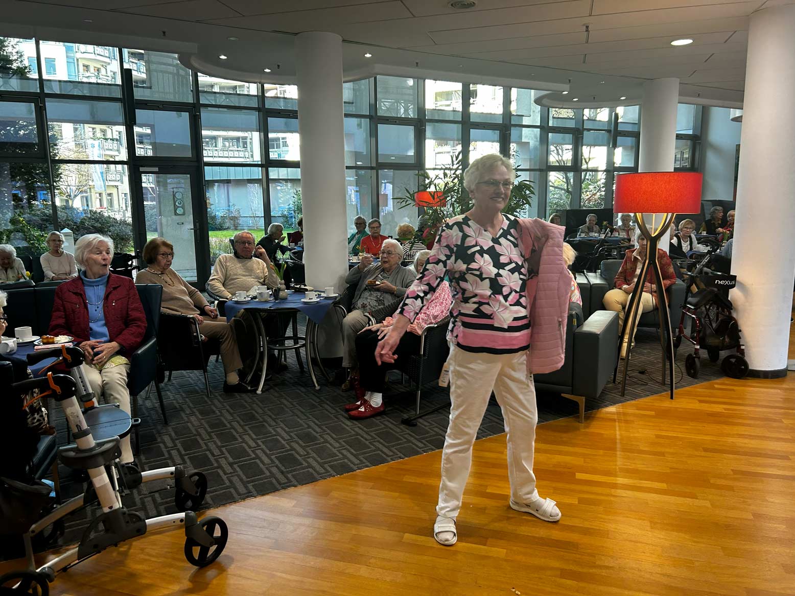 Bei unserer Modenschau verwandelt sich der Wohnpark in einen kleinen Laufsteg. Unsere Bewohner*innen präsentieren mit viel Freude und Charme verschiedene Outfits – von elegant bis alltagstauglich. In fröhlicher Atmosphäre wird applaudiert, gelacht und gemeinsam gestaunt. Die Modenschau sorgt für Unterhaltung, stärkt das Gemeinschaftsgefühl und zeigt, wie viel Spaß Mode und das Präsentieren vor Publikum machen können.