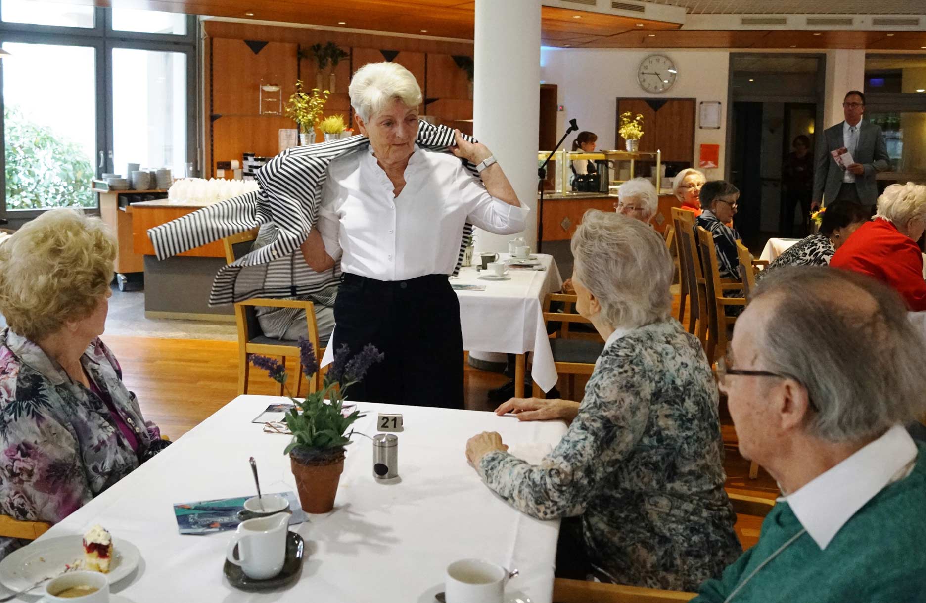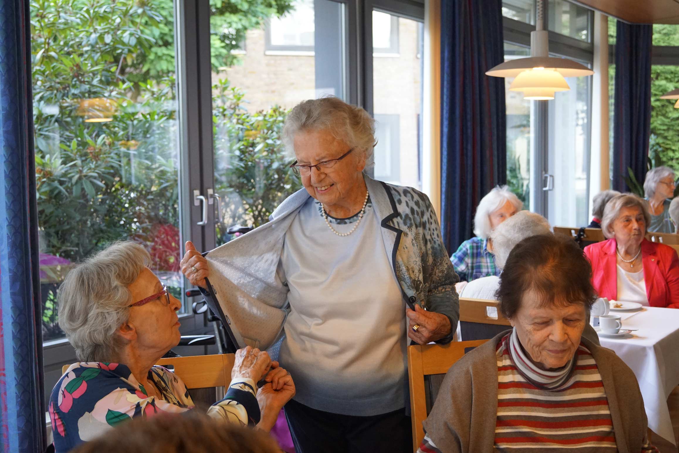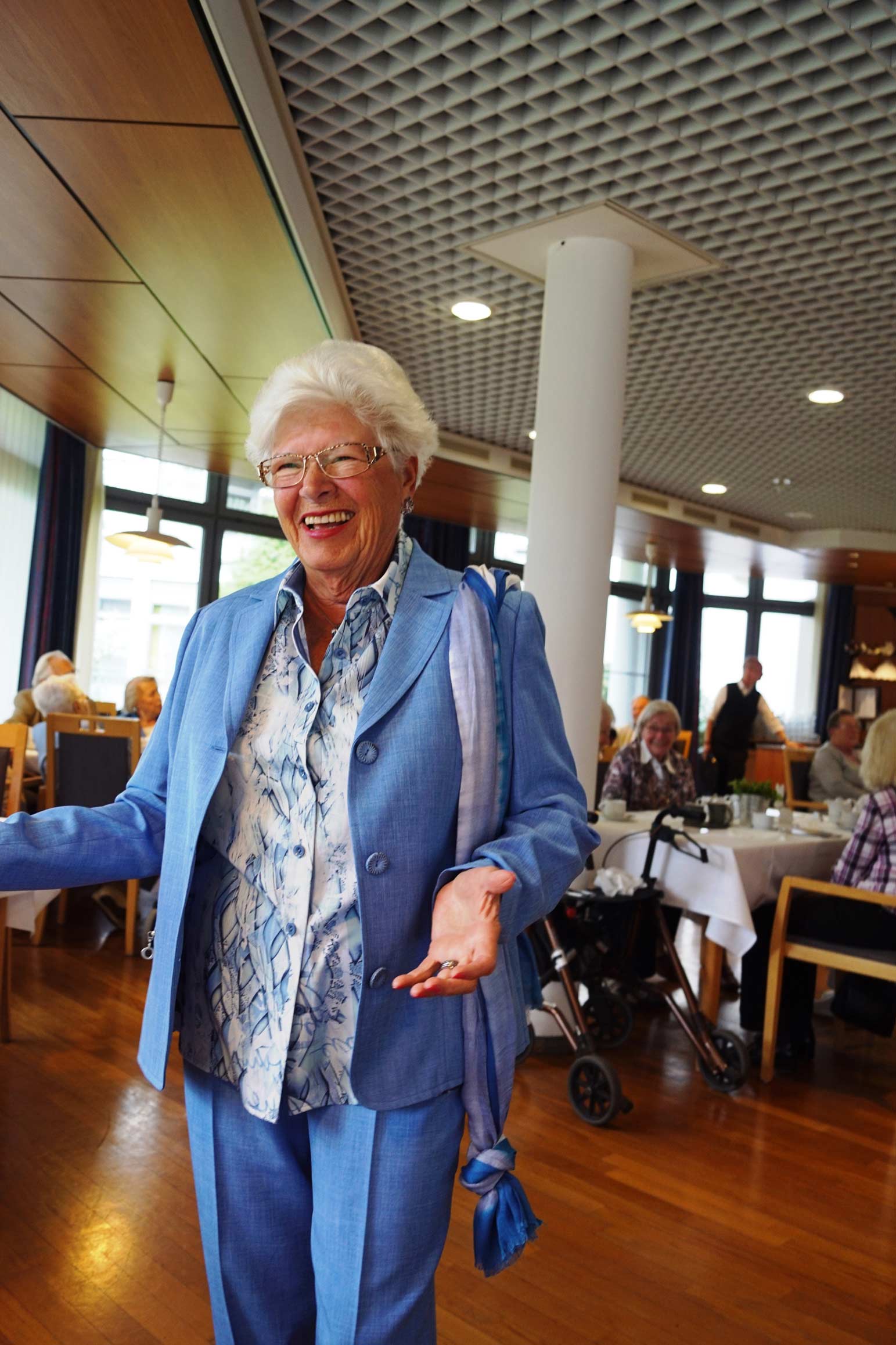 Bei unserer Modenschau verwandelt sich der Wohnpark in einen kleinen Laufsteg. Unsere Bewohner*innen präsentieren mit viel Freude und Charme verschiedene Outfits – von elegant bis alltagstauglich. In fröhlicher Atmosphäre wird applaudiert, gelacht und gemeinsam gestaunt. Die Modenschau sorgt für Unterhaltung, stärkt das Gemeinschaftsgefühl und zeigt, wie viel Spaß Mode und das Präsentieren vor Publikum machen können.