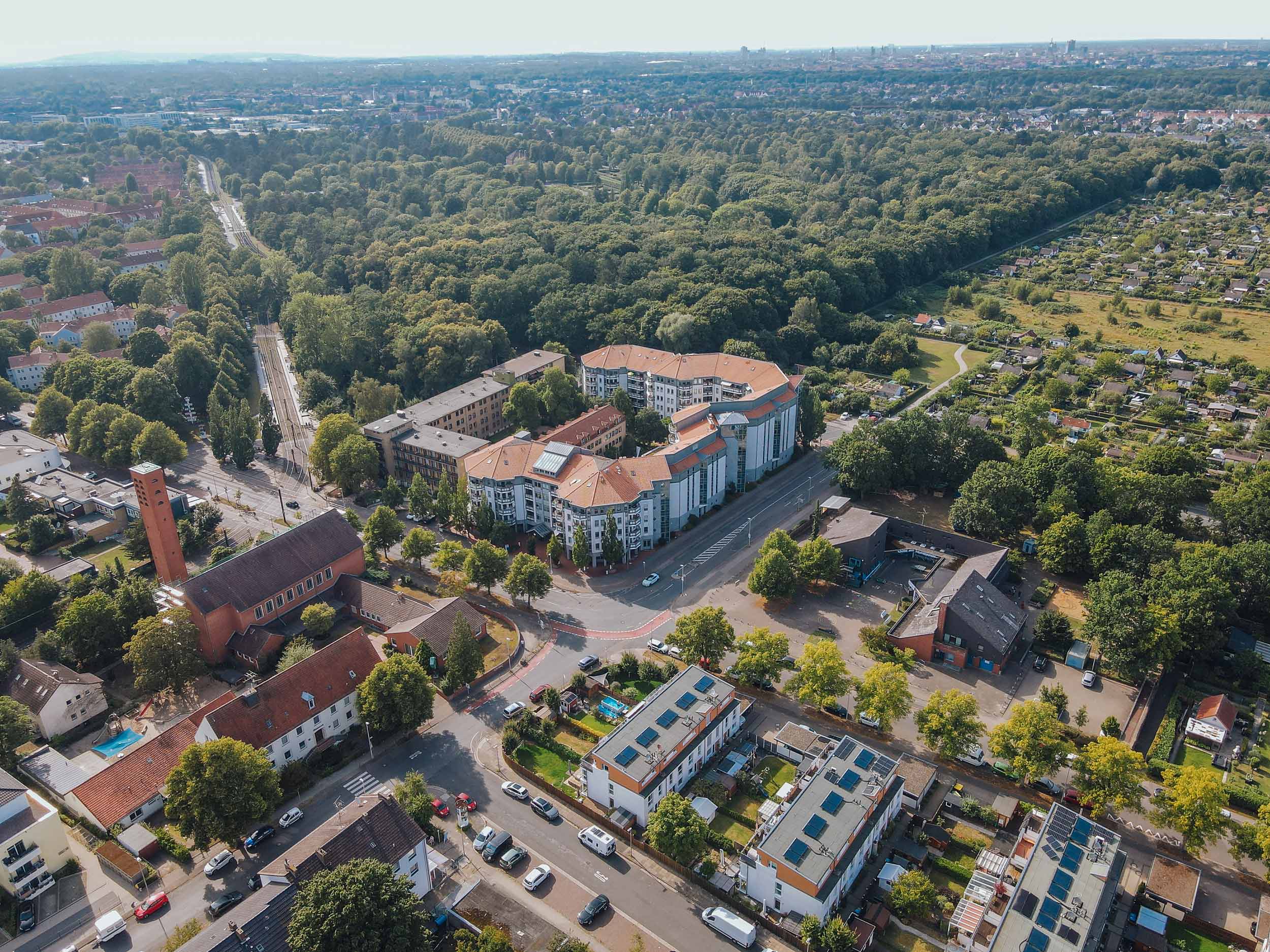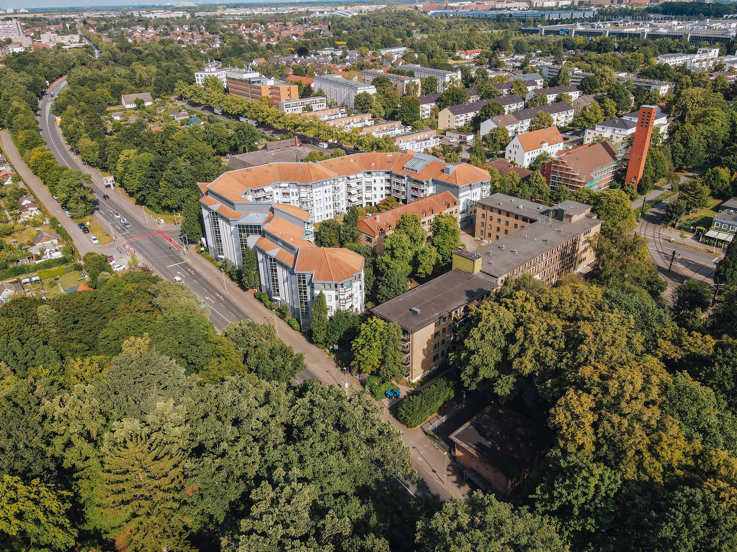 Die Verkehrsanbindungen sind ebenfalls ideal. Die Stadtbahn-Linie 8, die Buslinien 123 und 124 und der nahe Schnellweg bieten beste Voraussetzungen für Mobilität. Und für das eigene Auto können Sie gern einen Platz in unserer Tiefgarage buchen. Oder für ein Fahrrad einen kostenfreien Stellplatz nutzen.